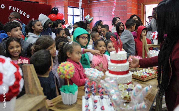 As 200 pessoas presentes puderam se aproximar da história da PAULUS por meio do vídeo institucional exibido. Alessandro Tiezzi, representando a Assistência Social PAULUS, fundamentou as ações da mesma. Em seguida, os convidados foram presenteados com apresentação de dança e música ao ritmo do coco, protagonizada pelas crianças e adolescentes do serviço. Na sequência foi servida feijoada, refeição preferida dos moradores do bairro, de acordo com pesquisa realizada pelos adolescentes em atividade do percurso norteado pelo livro Mais um Prato para Pedrinho, de autoria de Carlos Ferrari e parte integrante do kit de livros do Programa Direito e Cidadania. Por fim, a comemoração foi encerrada com efusivo parabéns e bolo.