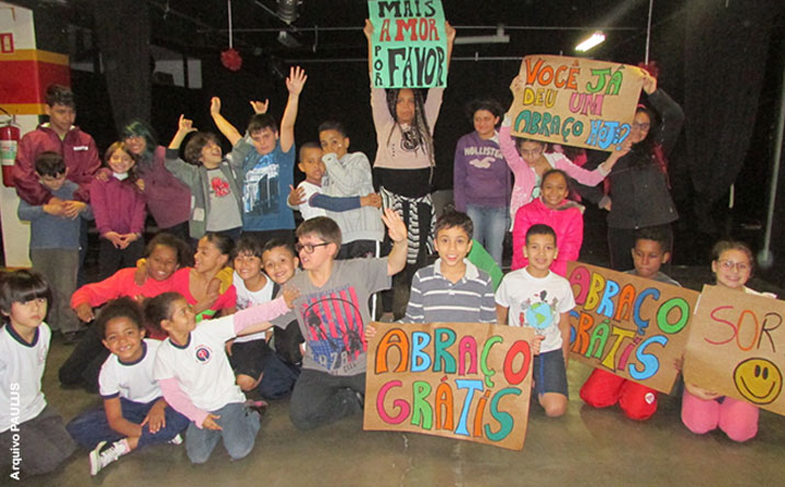No dia 25 de maio o Serviço de Convivência e Fortalecimento de Vínculos CCA CJ PAULUS realizou, pela segunda vez, o movimento “Abraço Grátis”, contando com a participação de nove dos seus adolescentes atendidos. O percurso realizado foi: saída da Rua Dias Velho em direção à Praça Santa Marcela localizada na Avenida Itaberaba, 1853.