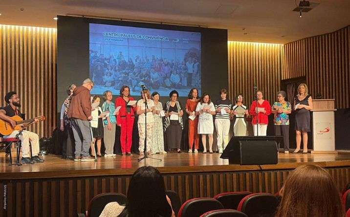 No dia 28 de novembro, a equipe do Centro PAULUS de Convivência – Vila Mariana celebrou as conquistas do ano em um belo evento protagonizado pelos adolescentes, jovens e pessoas idosas atendidas na unidade. O auditório da Faculdade PAULUS de Comunicação, a FAPCOM, foi o palco de apresentações, depoimentos, retrospectivas e a entrega dos certificados de participação.