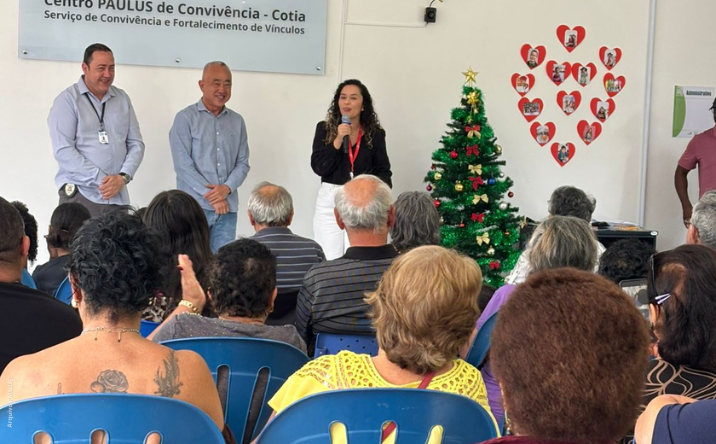 No dia 26 de novembro, o Centro PAULUS de Convivência – Cotia celebrou seu primeiro aniversário! A comemoração contou com a presença de atendidos e suas famílias, do Secretário de Desenvolvimento Social e Periferias, Celso Itiki, e do Secretário de Segurança Pública, Fabrício Dourado. Os secretários e os familiares puderam vivenciar de perto as atividades que são realizadas rotineiramente na unidade, conhecendo o serviço na prática, da mesma forma que os atendidos experimentam em seu cotidiano.