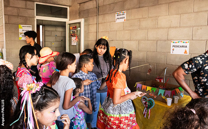 Na última sexta-feira, 21 de junho, foi realizada no Centro PAULUS de Convivência – Freguesia do Ó, a festa junina da família e convivência, com toda a temática caracterizada. Estiveram presentes crianças, adolescentes e seus familiares (aproximadamente 170 pessoas) com roupas típicas e iniciaram as festividades assim que adentraram ao espaço da convivência. No cardápio, foram servidas comidas típicas e deliciosas de festa junina, como milho verde, batata doce, bolo de fubá, canjica, cachorro quente, algodão doce, maçã do amor e os mais variados tipos de doces.