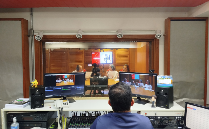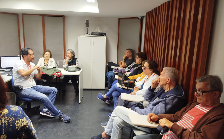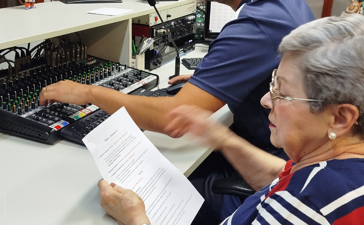 Para entender melhor o processo de gravação, os atendidos realizaram uma visita inicial ao estúdio da FAPCOM. Em um momento de troca com a equipe do estúdio, as pessoas idosas puderam tirar dúvidas que ajudaram na roteirização e na produção do primeiro episódio.