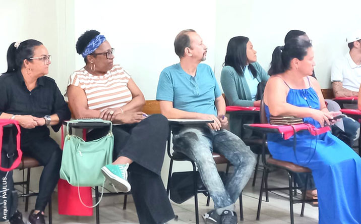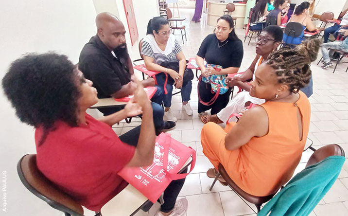 Como representantes do Assessoramento da PAULUS Social, estiveram presentes a supervisora Mira Lopes e o analista de projetos sociais André Nascimento, que prestaram suporte técnico à formadora, garantindo que o conteúdo estivesse alinhado com as diretrizes da PAULUS e da política de Assistência Social. Também esteve presente no encontro a supervisora da Gestão Técnica do Trabalho do município, Sabrina Almeida, que também foi a principal articuladora local para que a PAULUS Social pudesse realizar a formação.