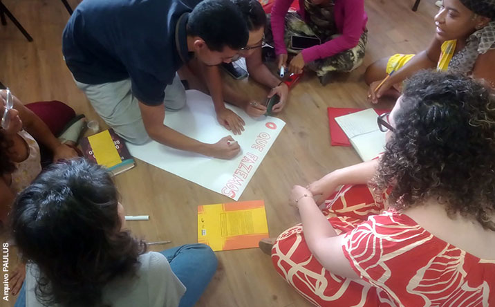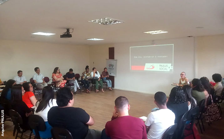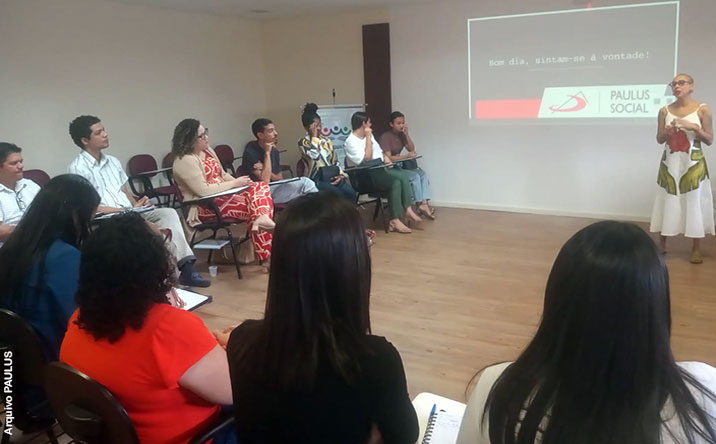 Samara Xavier, graduada em História pela UNESP-Franca, mestra em Serviço Social pela PUC-SP, formadora da PAULUS Social e autora do livro Pleníssimas – componente do kit de livros de 2019, foi a facilitadora desta oportunidade formativa.