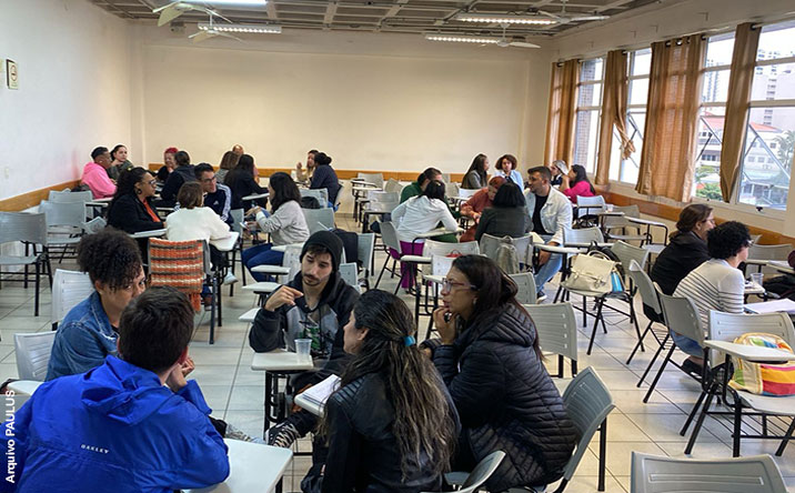 O processo formativo aconteceu na Faculdade PAULUS de Comunicação (FAPCOM), com a presença de 39 participantes de diversos serviços que compõem as diferentes proteções da Política de Assistência Social.