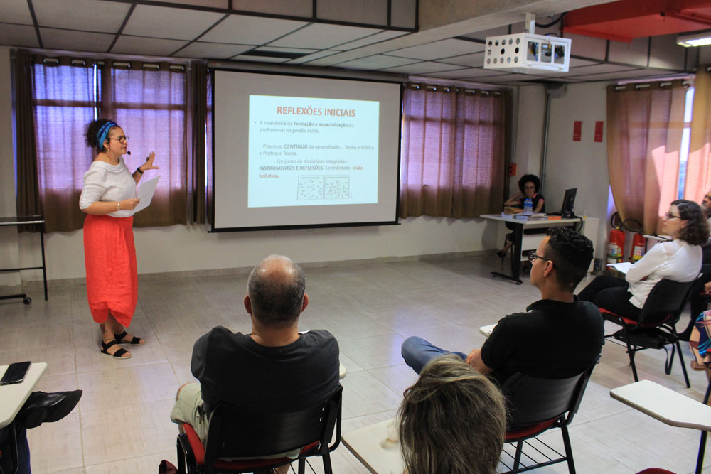 Iniciado às 14h00, o evento contou com uma sequência de oficinas cujos conteúdos foram oriundos das pesquisas realizadas pelos participantes da Pós Graduação que tiraram nota máxima em seus trabalhos de conclusão do curso e trataram sobre “Os desafios cotidianos do profissional do SUAS”, “Sustentabilidade das Organizações” e “Benefícios Eventuais na Assistência Social”.