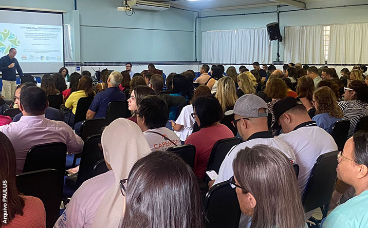 Dentre as autoridades convidadas para contribuir com o processo de reflexão, Alessandro Tiezzi – coordenador da área de assistência social da PAULUS – compôs a mesa, representando a instituição.