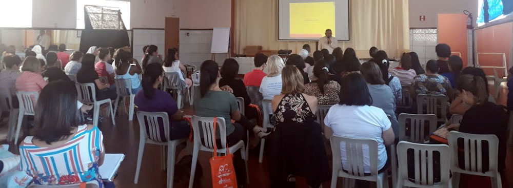 Comparecem à formação 60 profissionais atuantes na Assistência Social. Além de Caçapava, também estão presentes profissionais dos municípios de Paraibuna, Taubaté. Atuam como formadores nesta ocasião Aurimar Pacheco, coordenador no Núcleo PAULUS de Formação, Pesquisa e Disseminação Social, e Mira Lopes, Analista de Projetos Sociais na Assistência Social PAULUS.