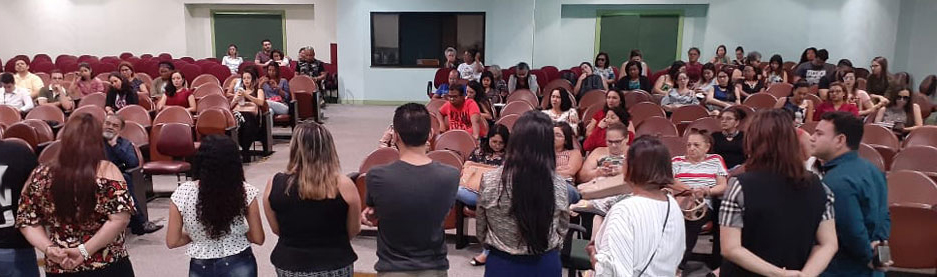 Com a participação de 70 profissionais atuantes em Serviços de Convivência e Fortalecimento de Vínculos de diversos municípios da região de Belém. Ministrado por Célio Vanderlei Moraes, o encontro trabalha os livros base do Kit de 2019 (“Democracia” de Fernanda Campana e “O cheiro das Cores” de João Pedro Roriz), gerando discussões e propostas de aplicação dos temas e desdobramentos na família e comunidade.