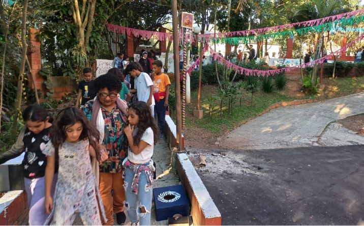 Esse espaço, que já faz parte da nossa história, foi reconstruído de forma coletiva durante o percurso da educadora Nilsa, com muito carinho, criatividade e participação das crianças, adolescentes e suas famílias.