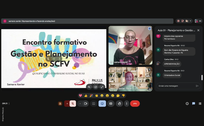 Entre os dias 24 e 27 de março, foi realizado o processo formativo “SCFV: Gestão e Planejamento Estratégico”, em formato síncrono, por meio de parceria com a Escola de Formação dos Trabalhadores do SUAS de Pernambuco.