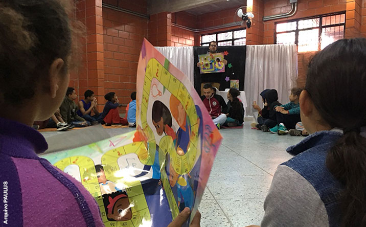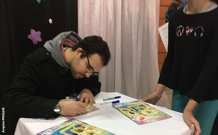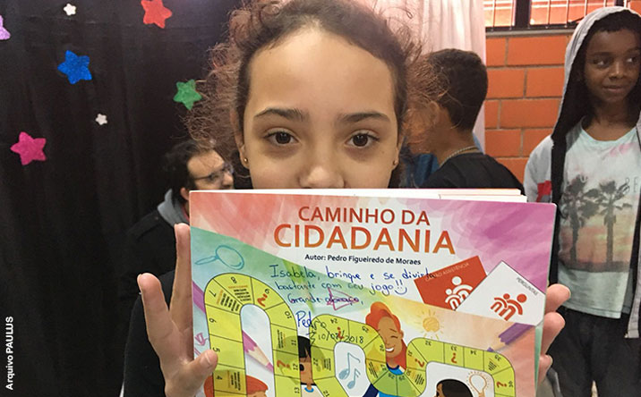 Pedro Figueiredo de Moraes, autor do jogo “Caminho da Cidadania”, esteve no Serviço de Convivência e Fortalecimento de Vínculos De Olho no Futuro, para participar de uma sessão de autógrafos. Estiveram presentes na ocasião 80 crianças e adolescentes, 47 atendidos no período da manhã, e 33 durante a tarde.