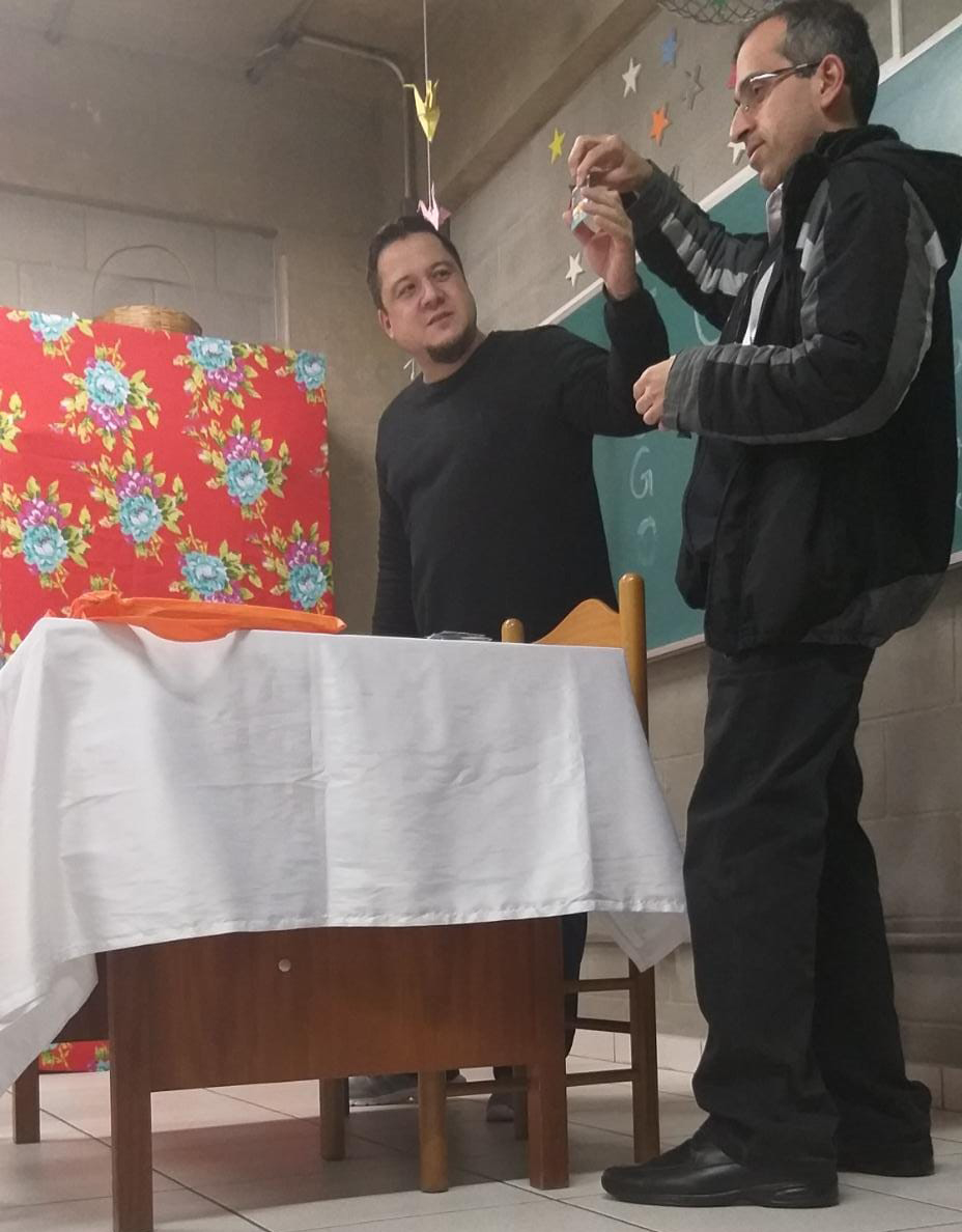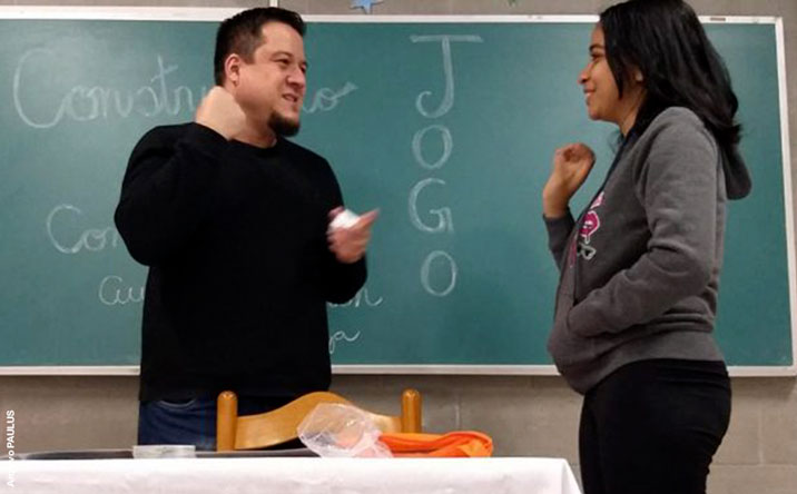 Para celebrar o momento, convidaram Denilson de Castro Souza, autor do jogo “Construindo a Convivência”, componente do kit PDEC 2019. Com brilho nos olhos e muito carinho, Denilson distribuiu autógrafos, abraços e sorrisos.