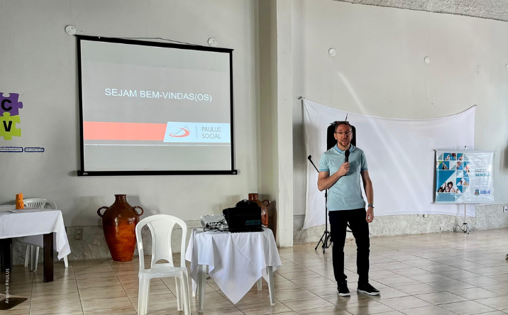 O coordenador da PAULUS Social, Alessandro Tiezzi, e a analista de projetos sociais, Anna Caroline Gama, marcaram presença no encontro. A analista participa de todas as fases de preparação e realização da formação, assegurando que ela esteja em conformidade com as diretrizes da PAULUS e da PNAS.