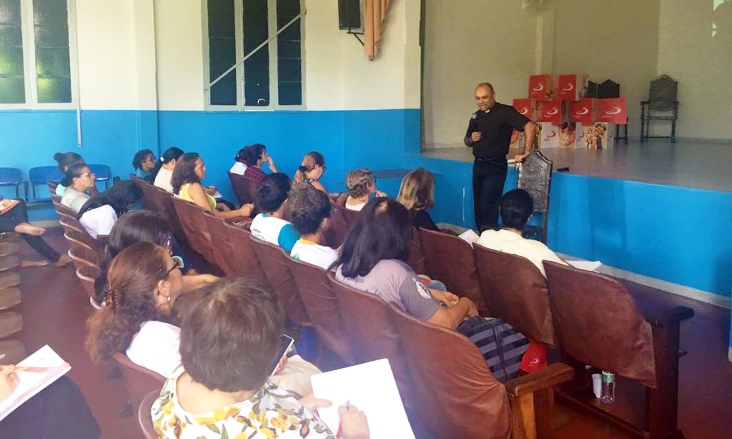 Após um breve intervalo, o professor Edvanio de Jesus apresentou as perspectivas da CNBB sobre a iniciação à vida cristã. Antes de seguir com as oficinas, os participantes desfrutaram de um almoço, onde puderam relaxar e trocar experiências com os demais catequistas.