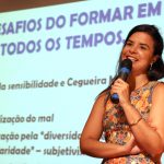 A professora e mestre em Educação Vivian Aparecida levou importantes reflexões sobre o catequista como mediador da fé. Essa mediação precisa acontecer por meio de uma experiência de fé e prática religiosa. “Para aprender viver em comunidade é preciso estar inserido nela. Acreditamos que a catequese precisa ser estruturada com a família. Eu tenho de saber a história de vida dessa criança. Como catequista, preciso estudar e saber sobre a Igreja”, finaliza.