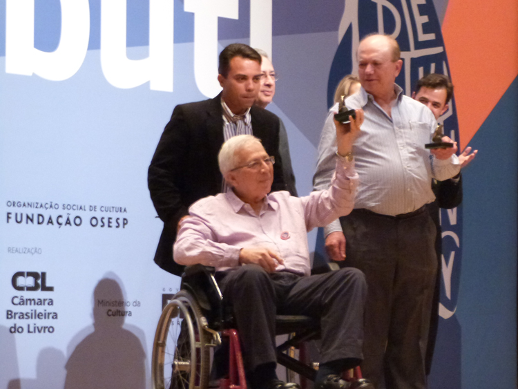 Aplaudido em pé, José Marques de Melo recebe o Prêmio Jabuti