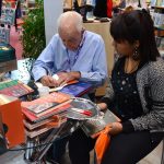 O público formou fila para a sessão de autógrafos do carismático e atencioso educador, que também pousou para fotos, conversou com as crianças e explicou aos professores o conceito de sua obra.