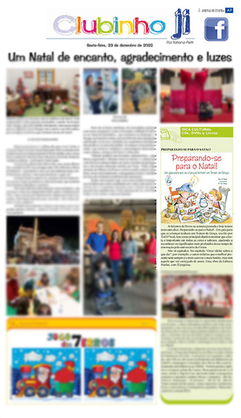 Descrição: No dia 23/12, a coluna Clubinho JI, do Jornal de Itatiba (SP), indicou o livro "Preparando-se para o Natal - Um guia para que as crianças tenham um Tempo de Graça", publicado pela PAULUS Editora.