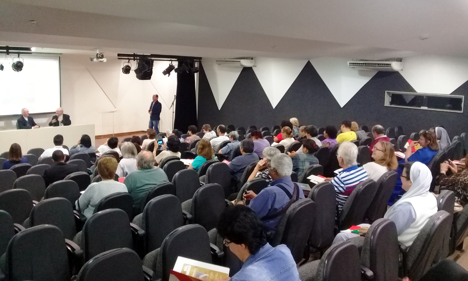 Na manhã de sábado (21), cerca de 80 pessoas participaram do Colóquio Teológico no auditório da Cúria diocesana de Santo André, promovido pela PAULUS Livraria. O cardeal Dom Cláudio Hummes foi convidado para ministrar a formação que teve como tema “Papa Francisco e Apóstolo Paulo: lâmpadas no caminho”.