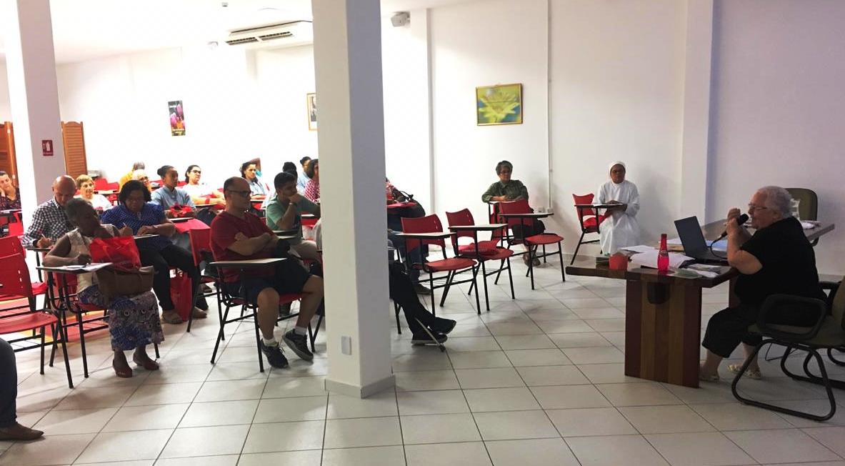 Foi realizado no sábado (11), o terceiro encontro do curso de Extensão Bíblica que contou com a participação de aproximadamente 20 pessoas. Realizado em dois períodos, os participantes aprofundaram os estudos dos métodos de interpretação da Bíblia e o estudo do livro dos Atos dos Apóstolos. As aulas foram ministradas pela professora Ir. Judite Paulina, teóloga e religiosa da Congregação Nossa Senhora de Sion.