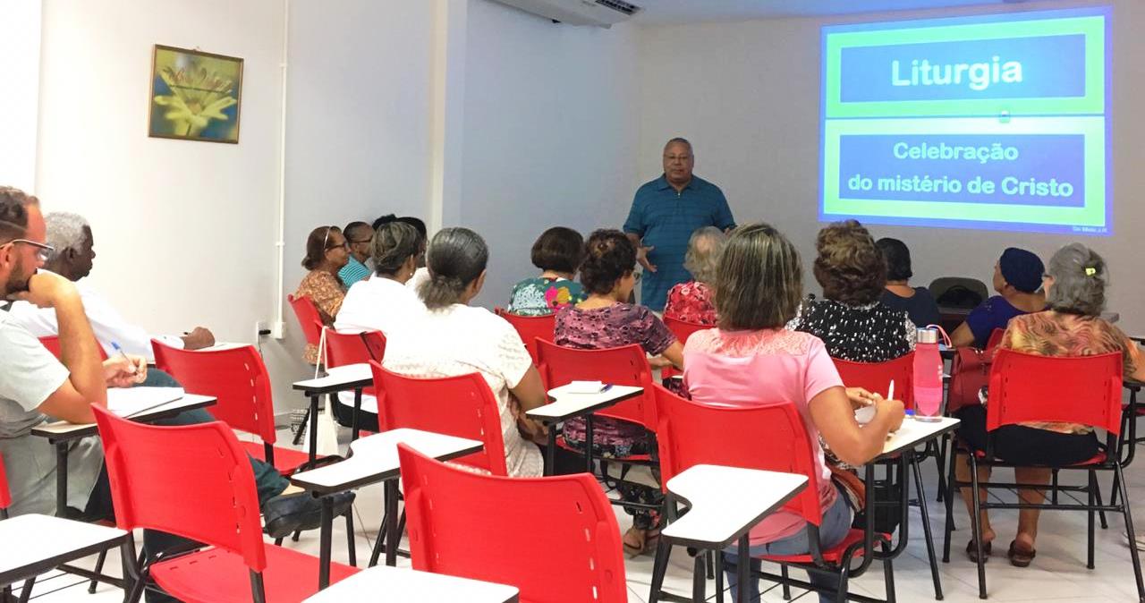 Pe. José Raimundo Melo, doutor em Liturgia, iniciou o encontro definindo a liturgia como “a celebração por meio de símbolos e de ritos do mistério pascal de Jesus Cristo”. O sacerdote questionou aos participantes, o que seria o “Mistério Pascal de Cristo” e explicou que trata-se da comunicação íntima de sua vida, de sua salvação e de seu imenso amor para todas as pessoas humanas.