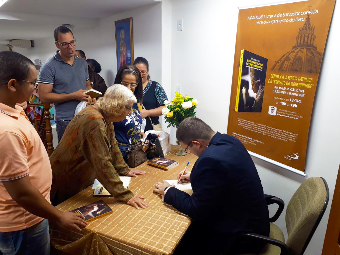 Na sexta-feira (13), a PAULUS Livraria de Salvador promoveu o lançamento do livro Bento XVI, a Igreja Católica e o “Espírito da Modernidade”, de Rudy Albino de Assunção. Os presentes participaram de uma missa celebrada pelo Pe. Charles Assis e, em seguida, de um bate-papo com o autor da obra.