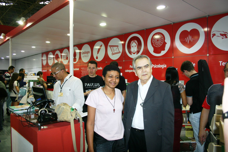 Padre Zezinho, SCJ, em visita ao estande da PAULUS