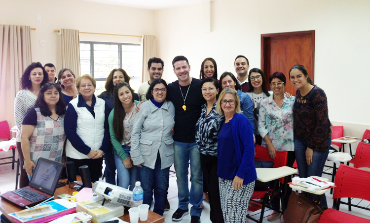 Rogério é autor do livro Jogos e brincadeiras para a catequese. Publicada pela PAULUS Editora, a obra reúne atividades especificas para a evangelização. Ao final da oficina, cada participante recebeu um exemplar do livro.