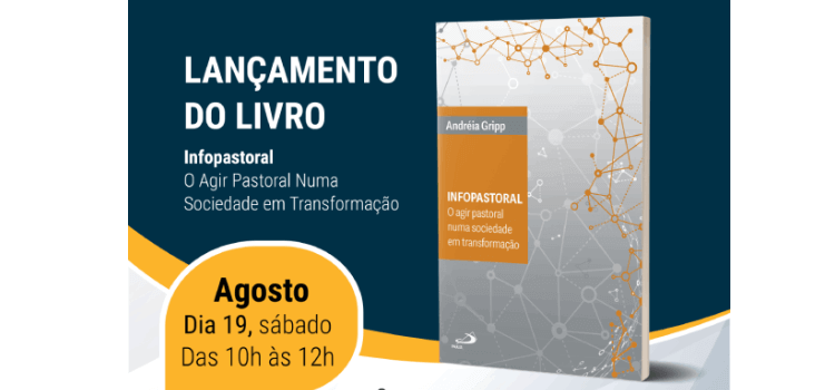 No sábado, dia 19 de agosto, a PAULUS Livraria do Rio de Janeiro promove o lançamento do livro “Infopastoral – o agir pastoral numa sociedade em transformação”. O evento é gratuito e acontece das 10h às 12h, no Auditório da Livraria, com a presença de Andréia Gripp e de Pe. Abimar Moraes, professor do departamento de Teologia da PUC-Rio.