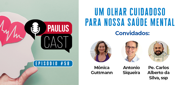 Para falar sobre a importância do cuidado com a saúde mental, suas definições, como e quando buscar ajuda e de que forma podemos quebrar os estigmas e preconceitos, o PAULUSCast 58 convidou para um bate papo Mônica Guttmann, psicóloga, arte-educadora, arteterapeuta e escritora; Antonio Siqueira, Doutor em Ciência da Religião (PUC-SP), diretor do Instituto Roko e Pe. Carlos Alberto da Silva, ssp, religioso paulino e psicólogo.