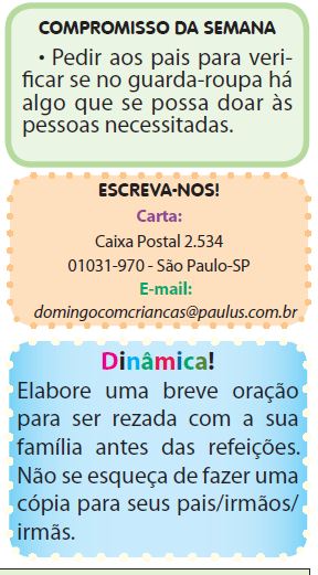 Este semanário litúrgico-catequético propõe, com dinamicidade, a vivência da missa junto às crianças. O folheto possui linguagem adequada aos pequenos, bem como ilustrações e cantos alegres para que as crianças participem, com prazer e alegria, da Eucaristia.
