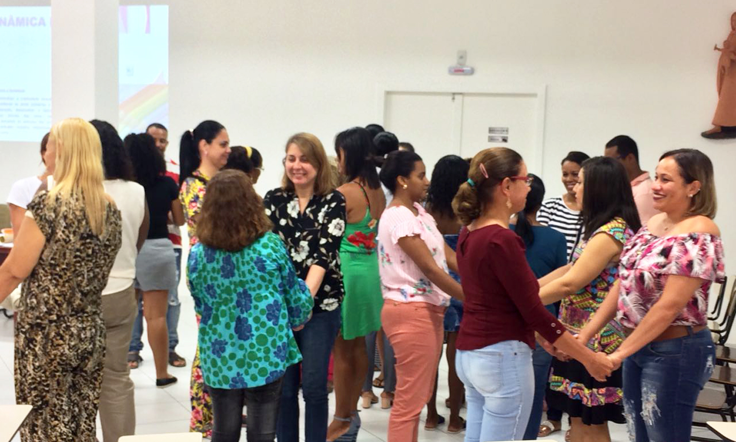 A palestrante Adélia Silva de Almeida, graduada em Pedagogia e pós-graduada em Psicopedagogia Clínica e Educacional, mostrou a importância dos jogos e brincadeiras no processo de ensino aprendizagem e trouxe, por meio de dinâmicas, a maneira como a ludicidade se faz relevante para a construção do conhecimento na Educação Infantil.