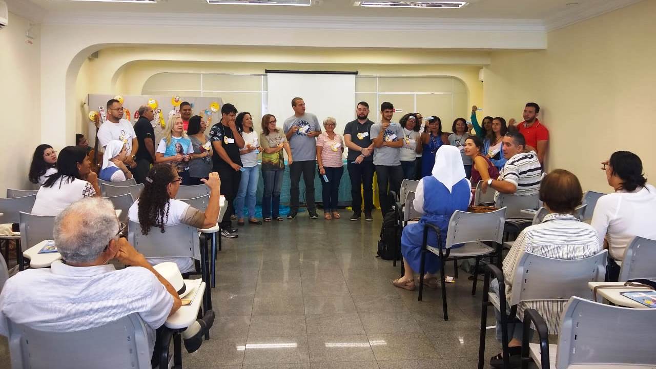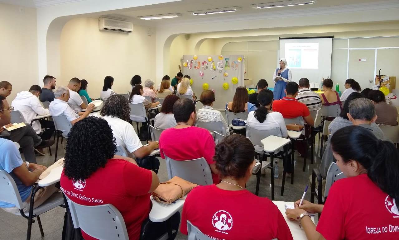 Com auditório repleto de participantes, a formação ministrada pelas Irmãs da Congregação de Nossa Senhora de Belém, buscou apresentar aos catequistas um serviço de evangelização baseado em uma pedagogia cristã autêntica, que permita aos adolescentes, em sua fase específica, ter contato com o anúncio evangélico que convida todos à experiência concreta da vida em Cristo. O encontro teve como base o livro Perseverando: subsídio para Catequese de Perseverança, publicado pela PAULUS Editora.