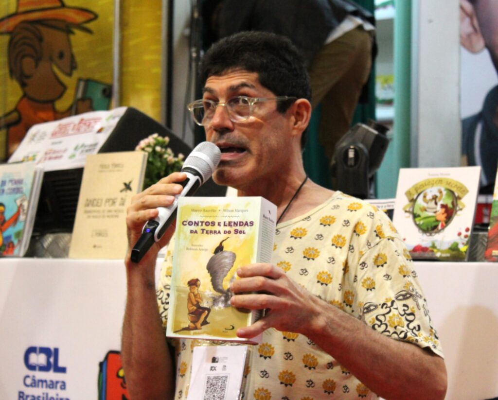 Na tarde da quinta-feira, 12, a PAULUS Editora apresentou ao público da 27ª Bienal Internacional do Livro “A lenda do Saci-Pererê”. Pela voz de Marco Haurélio Farias, o cordel foi recitado pelo autor como parte da programação do “Espaço Cordel e Repente”.