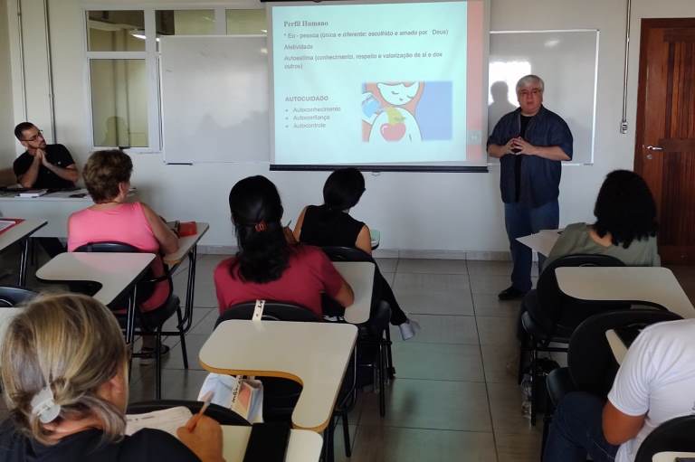 (Oficina “Formando Formadores” com o catequista e autor Rogério Bellini).