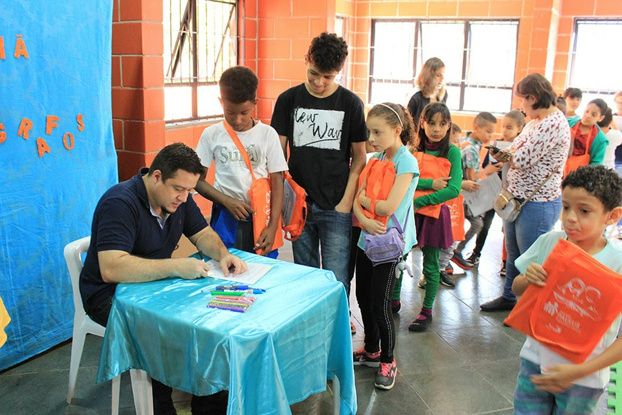 Durante o evento também aconteceu a distribuição dos Kits do Programa Direito e Cidadania de 2019. O autor do jogo “Construindo a Convivência”, Denilson Castro entregou os kits as crianças e adolescentes e distribuiu autógrafos.