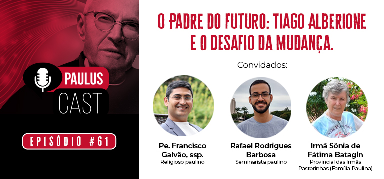 Este diálogo fala sobre os principais aspectos da vida de um homem que não teve receio da modernidade, num contexto de mudança de época e grandes desafios. Para falar dos principais aspectos da vida e missão do Bem-aventurado Padre Tiago Alberione, o PAULUSCast 61 recebeu a Irmã Sônia Batagin – Provincial das Irmãs Pastorinhas e os religiosos da Pia Sociedade de São Paulo (PAULUS),Pe. Francisco Galvão e o seminarista Rafael Rodrigues Barbosa.