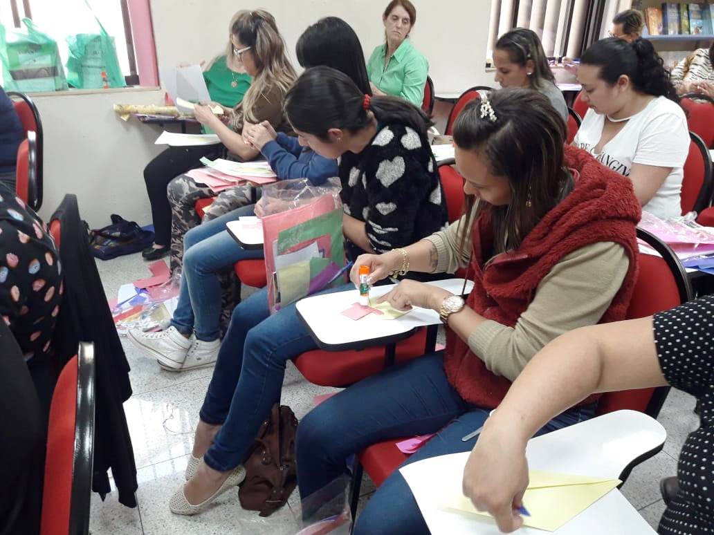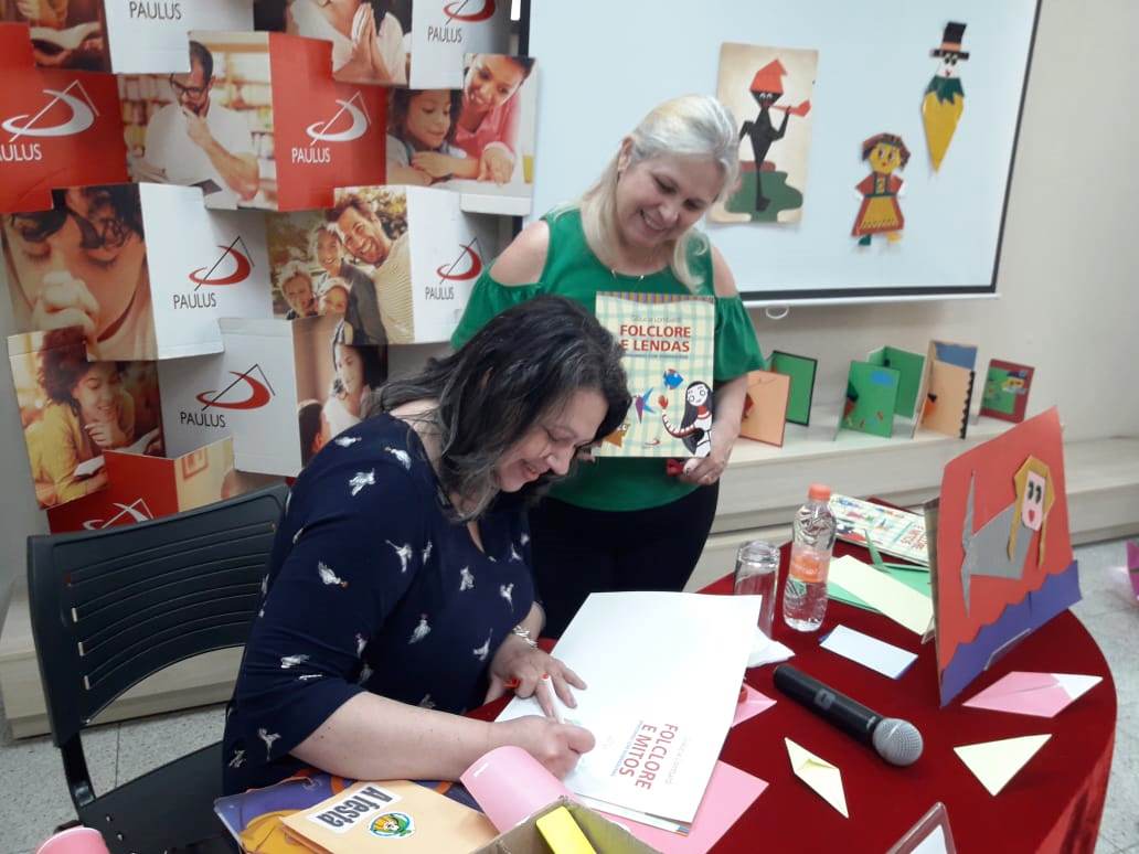 No dia 28, cerca de 30 professores reuniram-se na PAULUS Livraria da Vila Mariana para participar do curso “Folclore: atividades para dobrar e recortar”. A oficina foi assessorada pela arte-educadora Gláucia Lombardi, contadora de histórias e autora da coleção Brincando com dobraduras, publicada pela PAULUS.