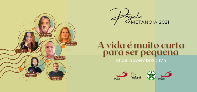 No próximo dia 18 de novembro, às 17h, o Projeto Metanoia convida o público em geral a participar do encontro virtual para pensar e discutir o tema:A vida é muito curta para ser pequena”. O evento será gratuito e terá transmissão simultânea através do Facebook e Youtube da FAPCOM, PAULUS e IJEP e contará com a participação de professores, especialistas da área da comunicação e psicologia, religiosos e filósofos.