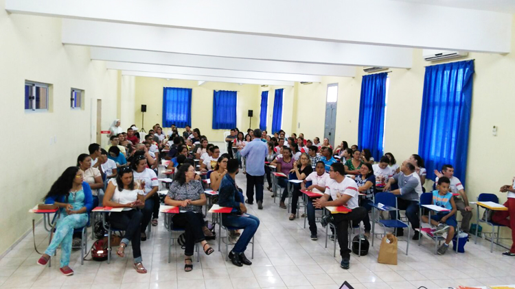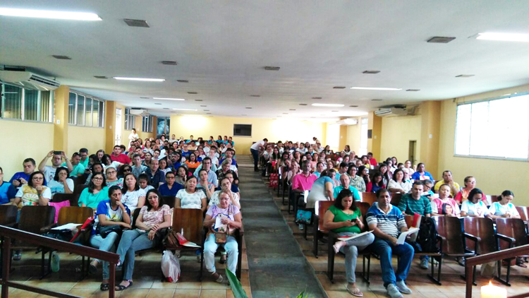 A cidade Maracanaú (CE) recebeu a formação nos dias 4 e 5, com o tema “Catequese do Batismo”. Cristiane Rosá, que trabalha no setor pastoral da Diocese de Joinville e colaborou na elaboração dos manuais para o Batismo, foi a responsável por palestrar para os cerca de 120 catequistas que marcaram presença no salão paroquial da Igreja Nossa Senhora do Perpétuo Socorro.