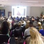 Em seguida, a Professora Doutora Sônia Bonelli, que conduziu a segunda palestra, falou sobre o papel do professor no uso das tecnologias de informação e da comunicação na escola diante dos desafios da contemporaneidade. O encontro reuniu cerca de 150 participantes, entre professores dos vários níveis, coordenadores, diretores e orientadores educacionais.