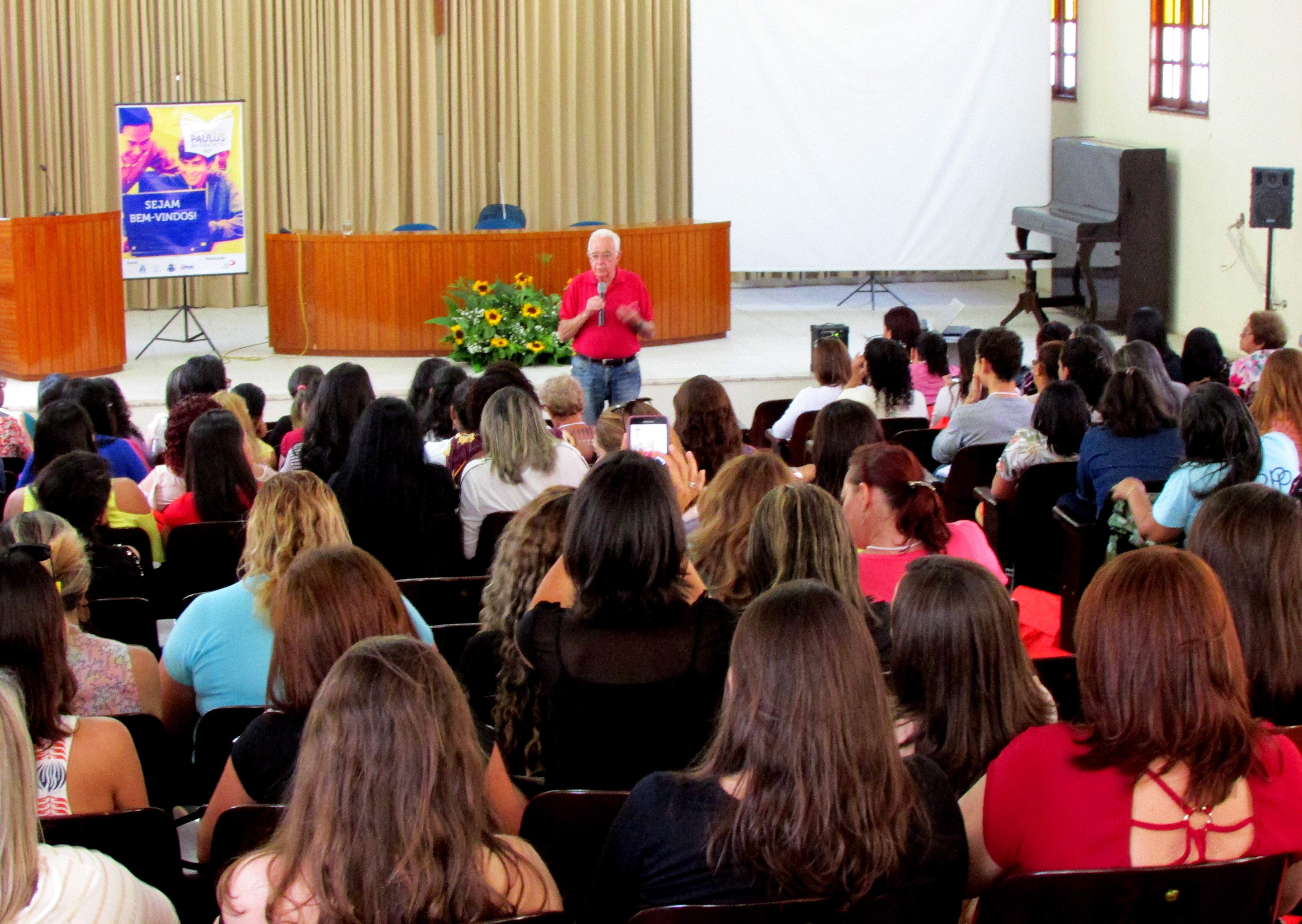 Na primeira palestra do seminário, o Prof. Cleison Rabelo buscou refletir sobre a existência humana sob o lema “Não faça de sua vida um rascunho, você poderá não ter tempo de passá-la a limpo”. Após uma pausa para o coffee break, foi a vez de o autor Celso Antunes transmitir toda sua experiência aos educadores presentes.