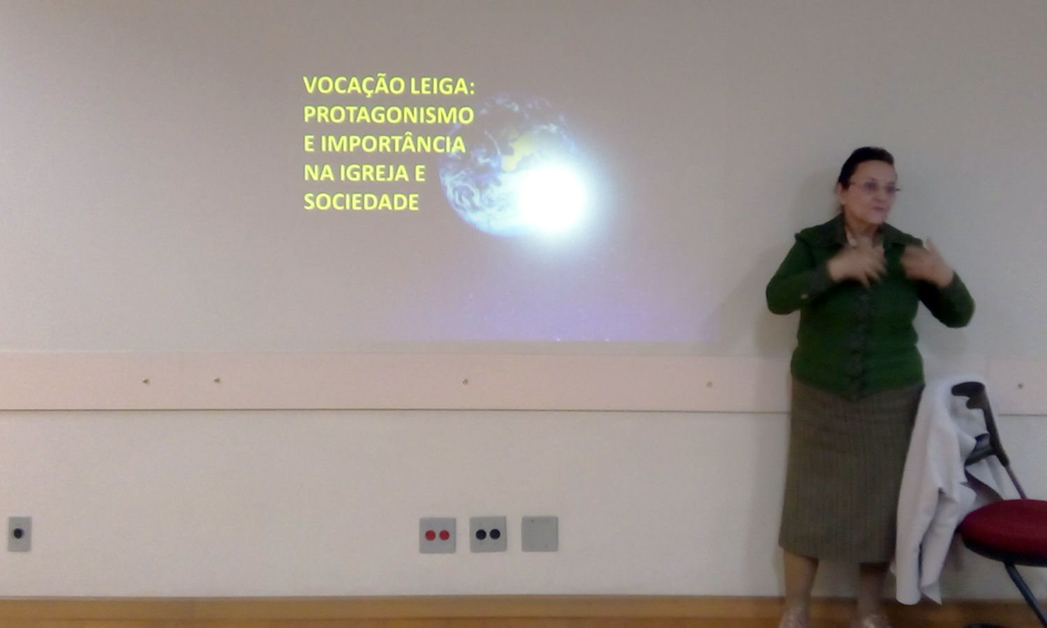 A facilitadora Moema Rodrigues, fundadora do Instituto Secular Murialdo, propôs uma discussão sobre ano do laicato a partir de três aspectos: a identidade e importância da vocação leiga; o testemunho no mundo, como sal e luz; e a espiritualidade e discipulado, no exercício da cidadania em ação transformada da sociedade.